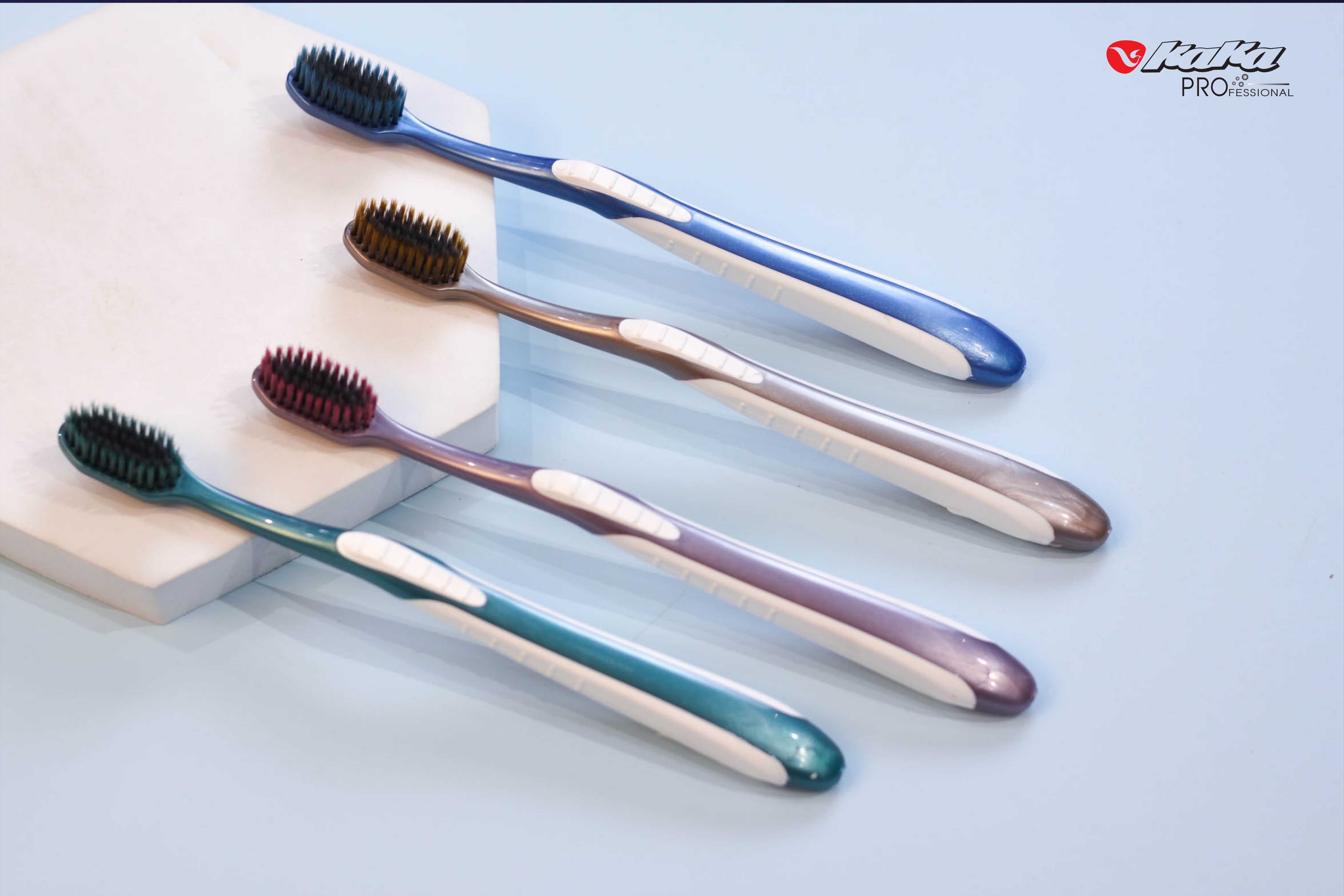 Đánh răng tối thiểu 2 lần/ngày bằng bàn chải lông mềm, ví dụ bàn chải đánh răng KaKa No.602, được thiết kế chuyên dụng cho implant, giúp làm sạch sâu mà không gây tổn thương nướu.